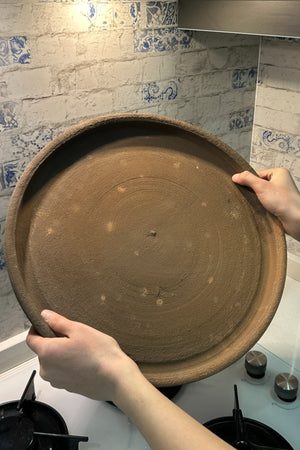 Doğal Pişmiş El Yapımı Toprak Hatay Belen Tavası Büyük Boy Toprak Çömlek Güveç Tava 36x2 cm